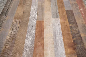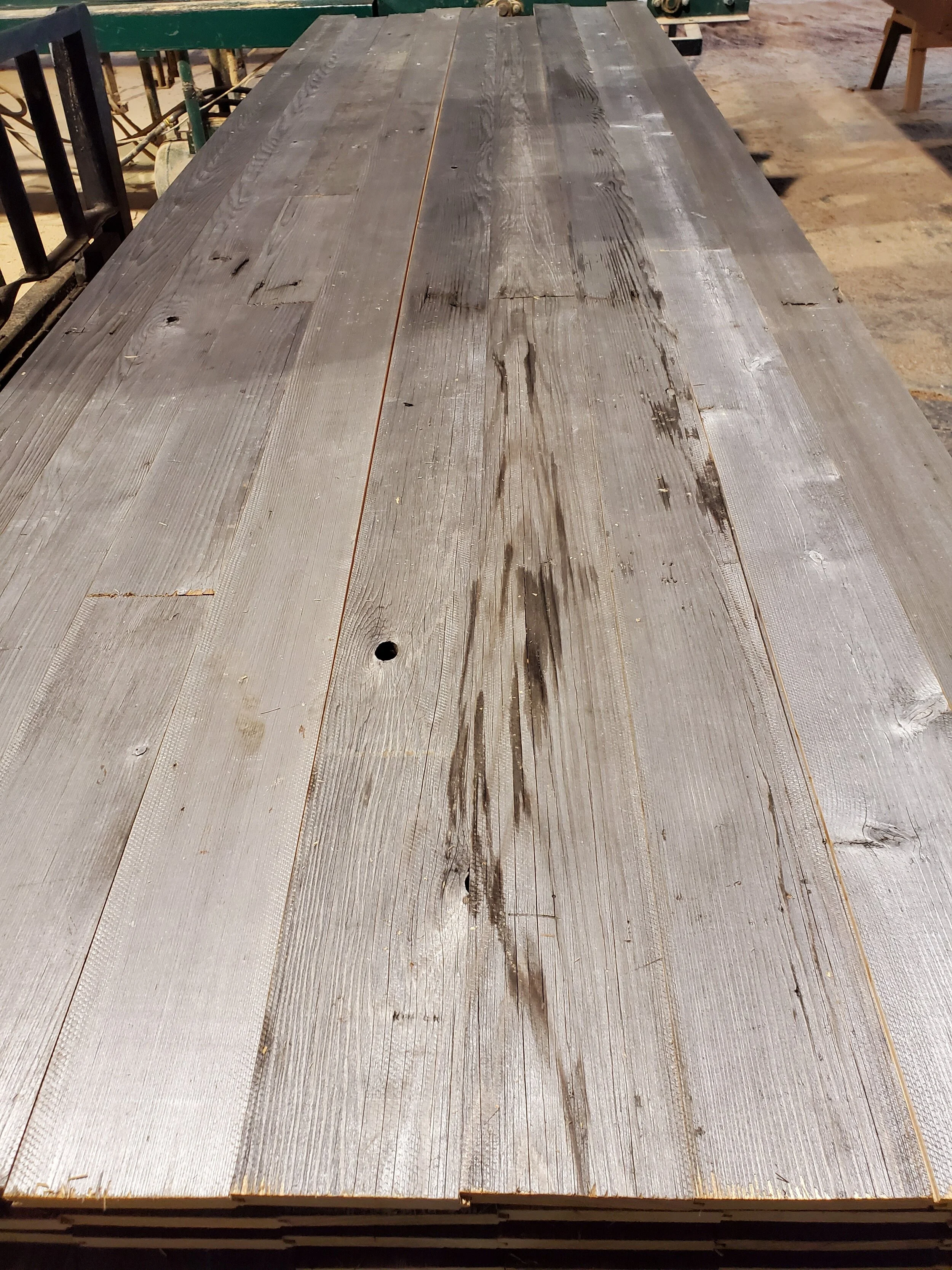 Lovely silver- or grey-toned wood... this is either 1/2” or 3/4" thick reclaimed Douglas fir that has been exposed to the rain and the sun long enough to develop a lovely driftwood-silver colour. Some of this product comes in a silver-grey colour, while other pieces have a number of silver-grey variations.